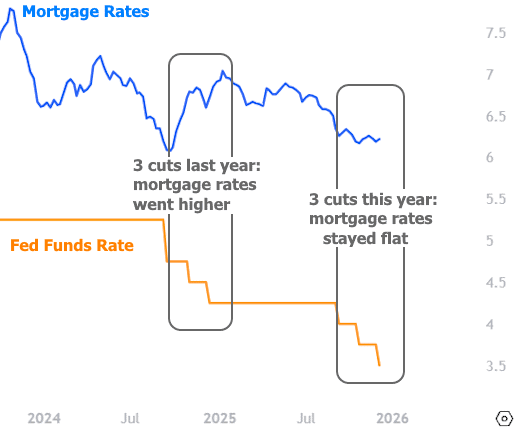 Friends don’t let friends believe the long-standing myth that Fed rate cuts = lower mortgage rates. That myth refuses to die, but here we are again with fresh evidence.