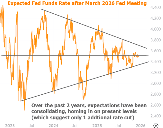 It also doesn’t hurt (or surprise anyone) that the Fed’s policy path is becoming increasingly locked in. As far as markets are concerned, we’re probably looking at one more rate cut by early 2026, and that’s about it.