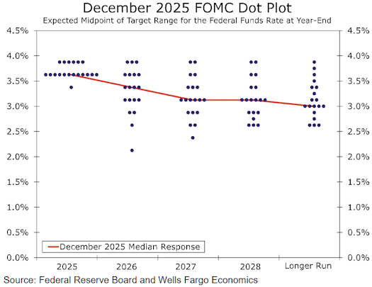 The median Fed member expects one more cut in 2026, and maybe one more by the end of 2028. That’s not exactly an aggressive rate-cutting spree.